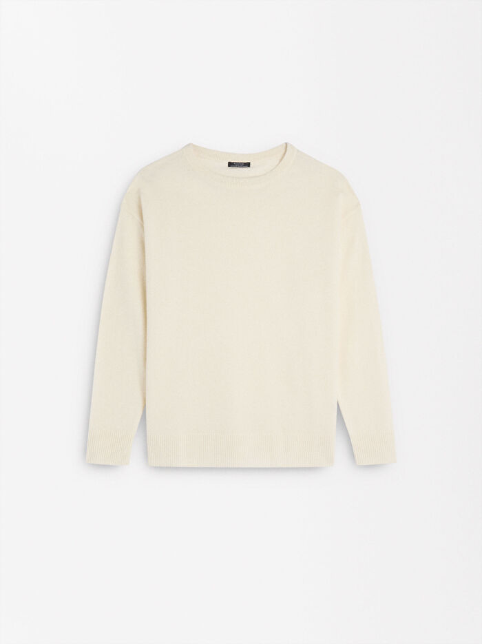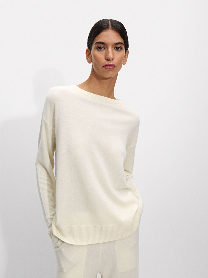 %100 kaşmirden üretilmiş kazak. Yuvarlak boyunlu. Uzun kollu. Model 1,73 m boyundadır ve XS-S beden giymektedir.