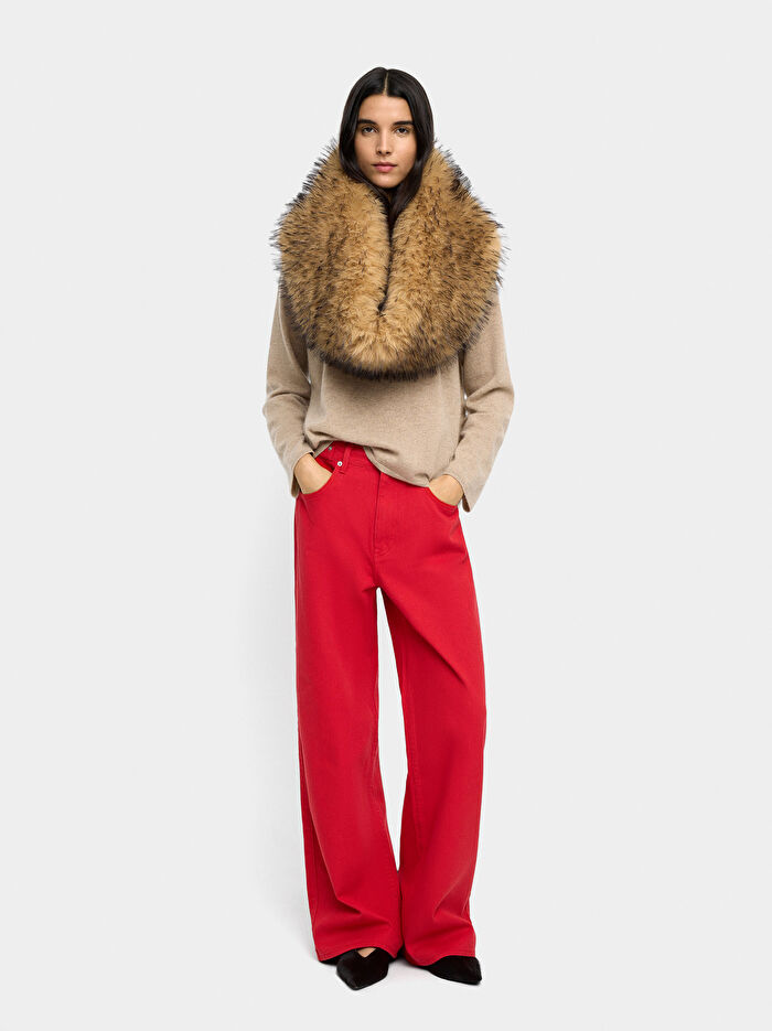 %100 pamuklu denim pantolon. Düz kesimli geniş paça. Yan cepler. Bir tarafta bacak boyunca dikişli arka cep. Düğme ve fermuarlı açıklık. Kemer halkaları. Model 1,78 m boyunda ve 38 beden giyiyor.