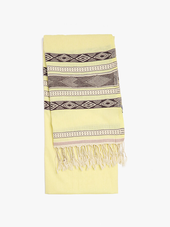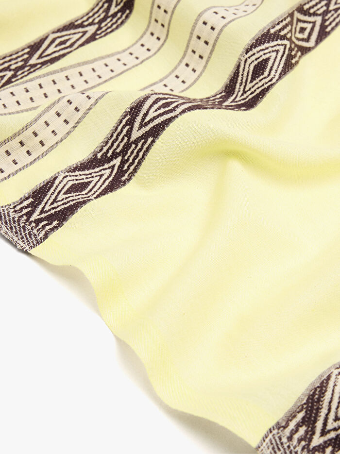 %100 pamuktan üretilmiş jakarlı şal. Yumuşak ve rahat, zarif bitiş. Etnik tarzda motif detayı. En klasikten en moderne her görünümü, her mevsim tamamlamak için ideal.