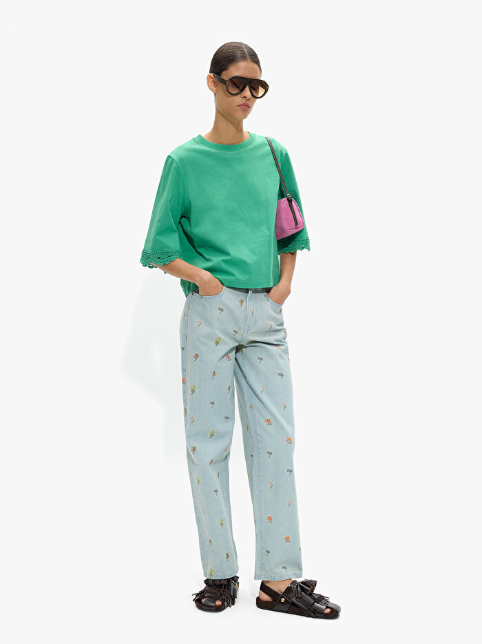 %100 Pamuk Kroşe Detaylı Bluz