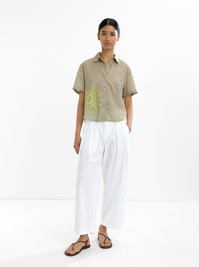 %100 Pamuk Nakışlı Gömlek