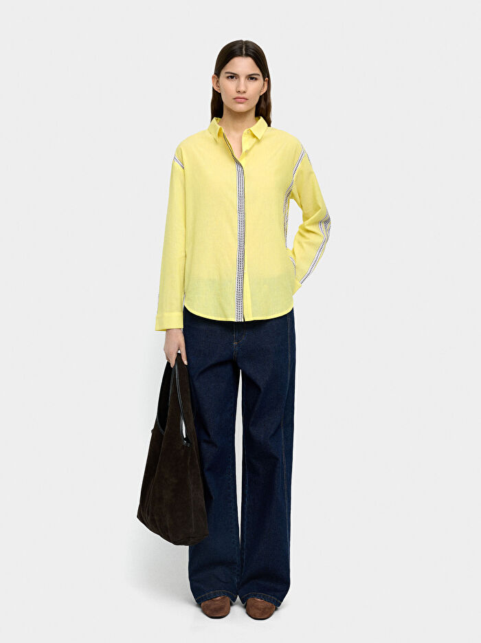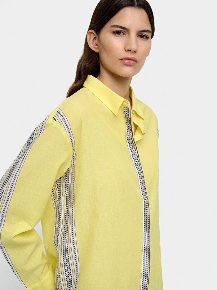 %100 Pamuklu Çizgili Detaylı Gömlek
