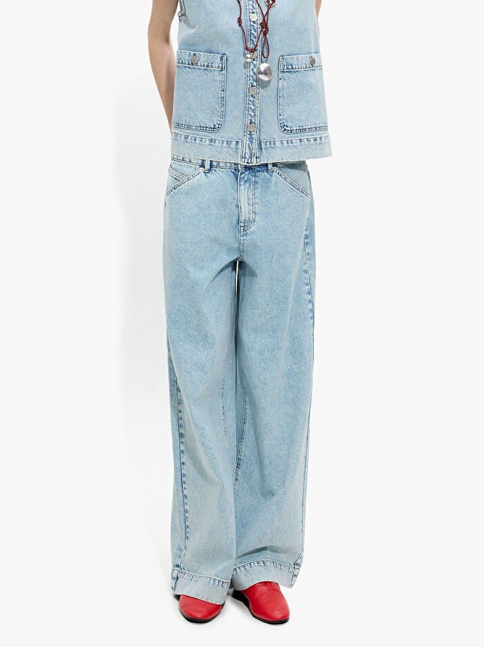 %100 Pamuklu Geniş Paça Denim Pantolon