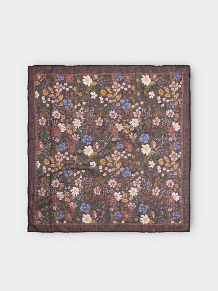 Çiçek desenli kare fular. %100 pamuktan üretilmiştir. Her kıyafete stil katan çok yönlü bir aksesuar.