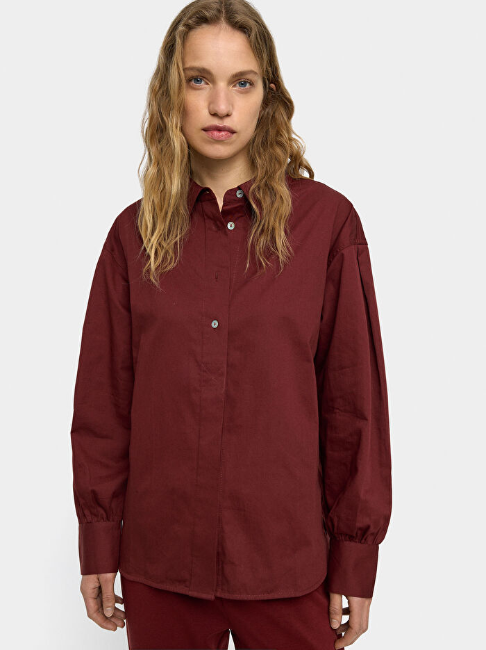 %100 pamuktan üretilmiş uzun kollu gömlek. Manşetli ve düğmeli. Model 1,77 m boyunda ve M beden giyiyor.