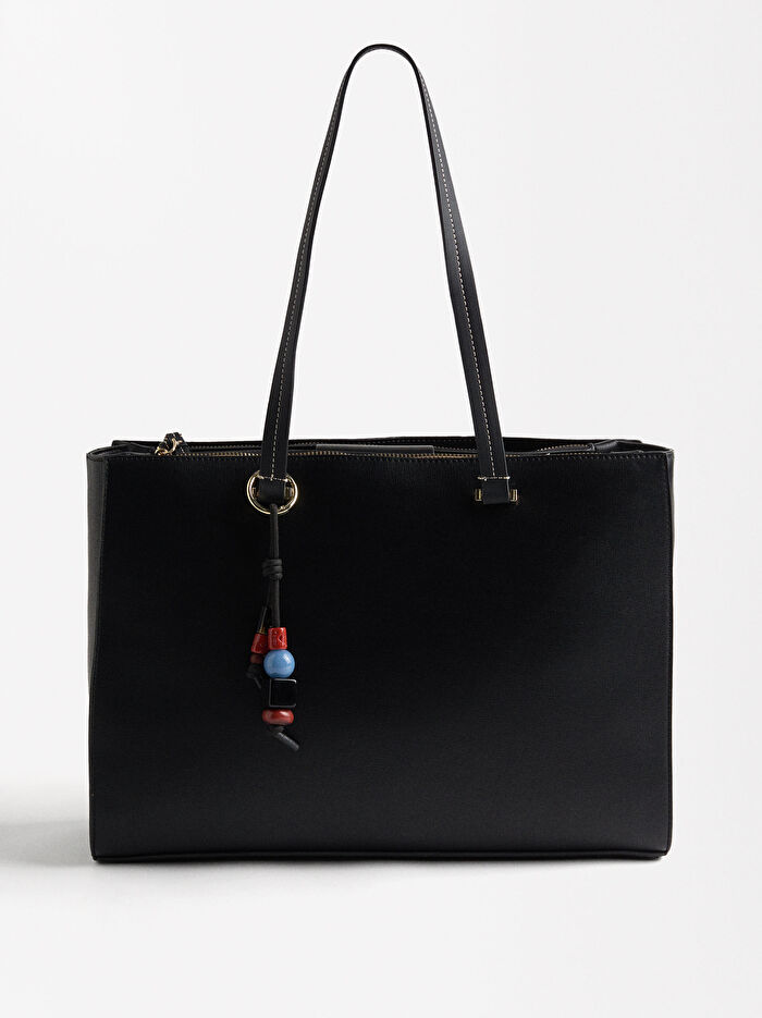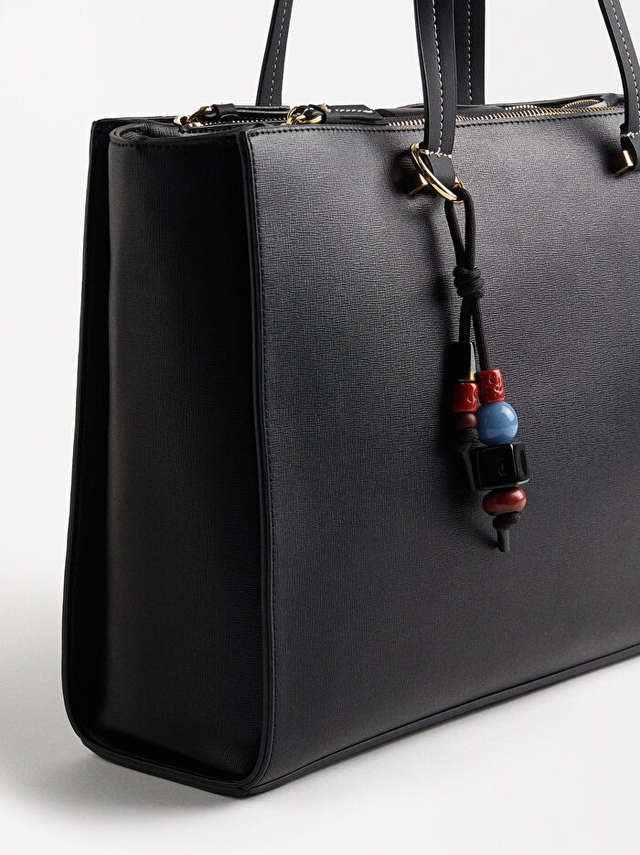 13" Dokulu laptop çantası. Üç bölmeli. Astar ve iç cep. Fermuarlı yan bölmeler. Sabit omuz askıları. Ayarlanabilir ve çıkarılabilir çapraz askı.