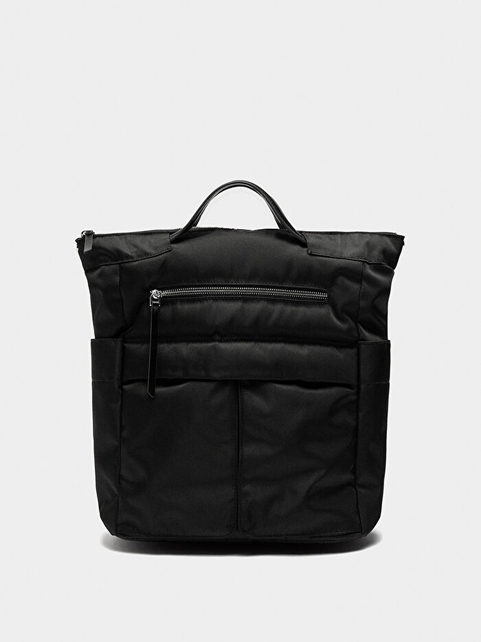 Teknik kumaş 13" laptop sırt çantası. Astar ve iç cep. İç bölme. Dış cepler. Fermuar kapatma. Sabit el kayışları. Gizlenebilen sabit ve yastıklı ayarlanabilir arka kayışlar.