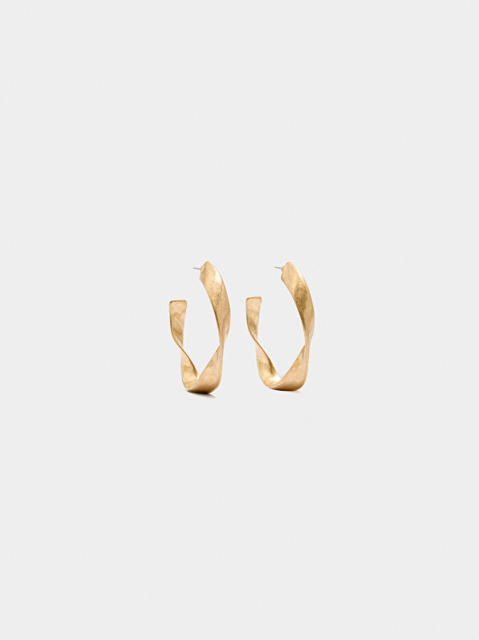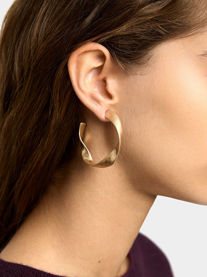 Büyük dalgalı açık halka küpeler. Eskitilmiş efekt.