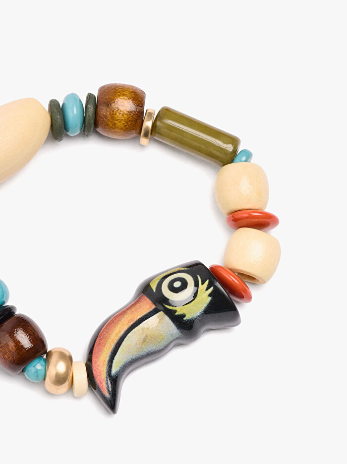 Ahşap Boncuklu ve Kuş Motifli Elastik Bileklik