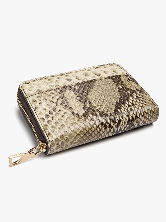 Dokulu ve hayvan desenli basic bozuk para cüzdanı. Kart yuvaları. Bozukluk bölmesi. Fermuarlı kapatma. Dış yuvalar.