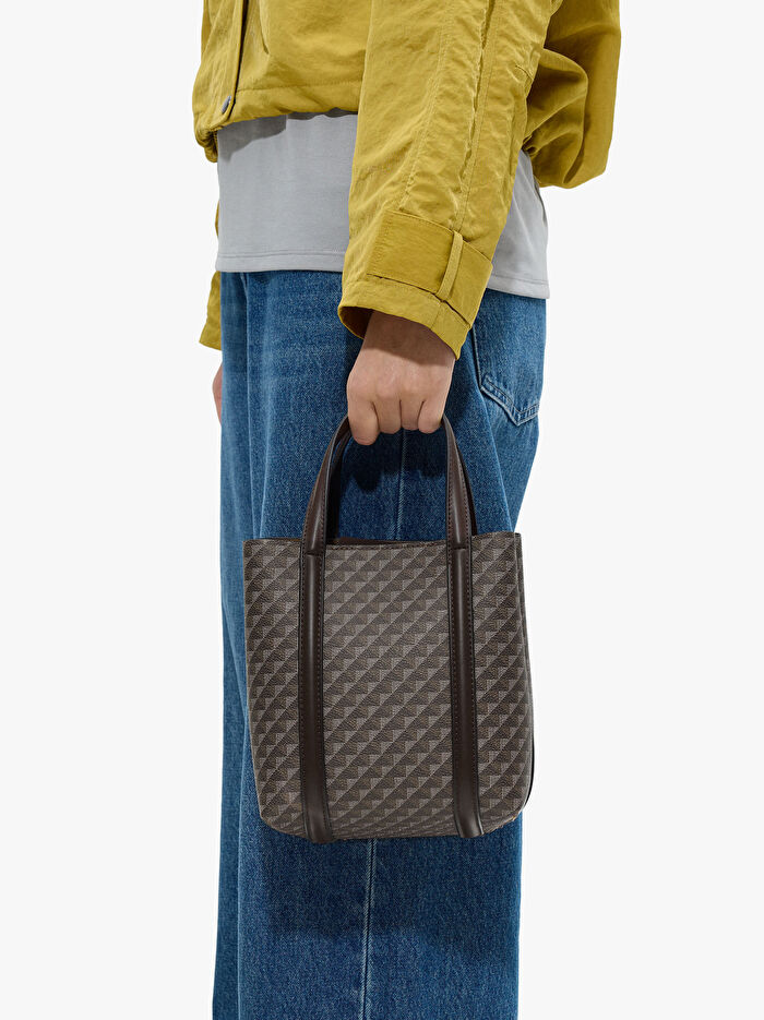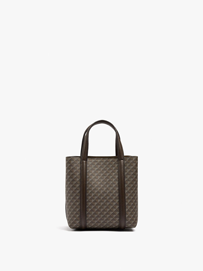 Astarlı ve ortada bir iç bölmesi bulunan küçük desenli tote çanta; fermuarlı. Ana kapak manyetik kapamalı. Sabit tutma sapları. Ayarlanabilir ve çıkarılabilir çapraz askı.