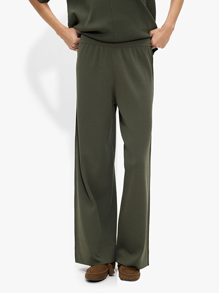 Düz örme pantolon. Düz kesim. Elastik bel bandı. Model 1,79 m boyunda ve XS-S beden giyiyor.