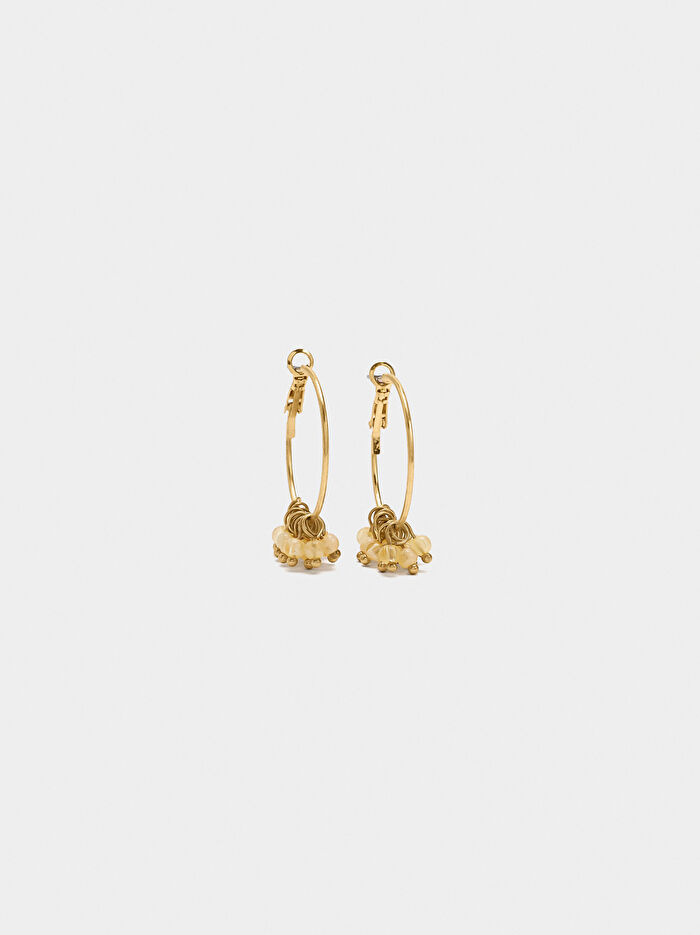 Tek renkli boncuklu açık halka küpeler. Eskitme efektli.