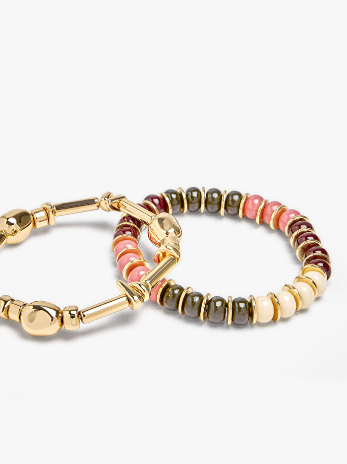 Çok renkli taş efektli boncuklu iki adet elastik bileklik seti.