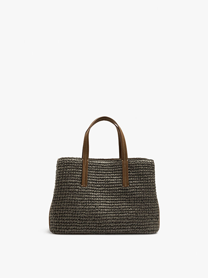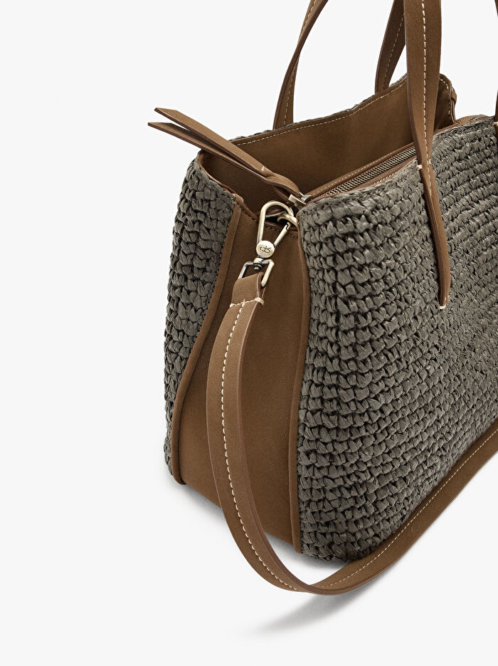 Çapraz Askılı Hasır Efektli Tote Çanta