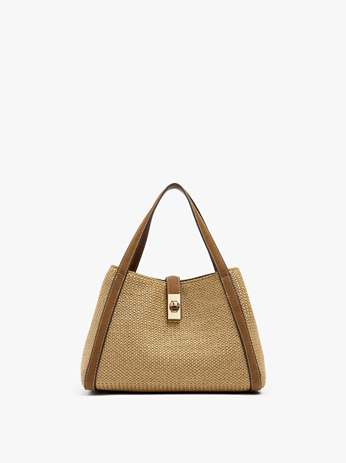 Çapraz Askılı Hasır Efektli Tote Çanta