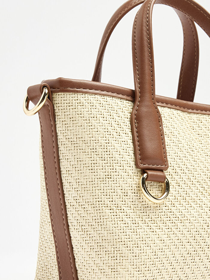 Çapraz Askılı Hasır Efektli Tote Çanta