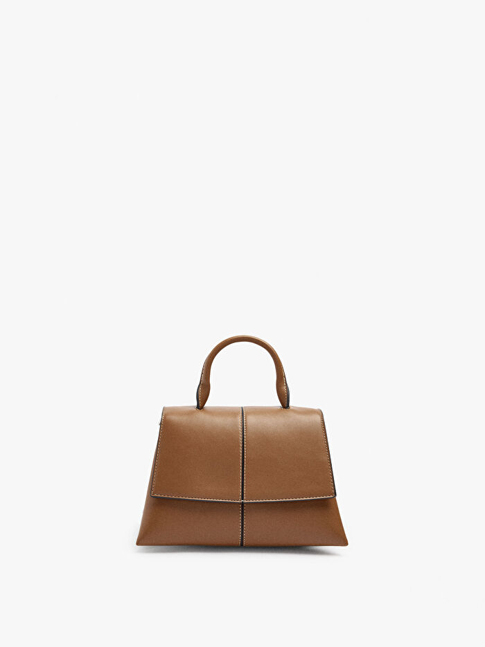 Sade ve yapılı el çantası. Astar ve iç cep. Üç bölme. Manyetik kapatmalı kapak. Sabit bileklik askısı. Ayarlanabilir ve çıkarılabilir çapraz askılı çanta askısı içerir.