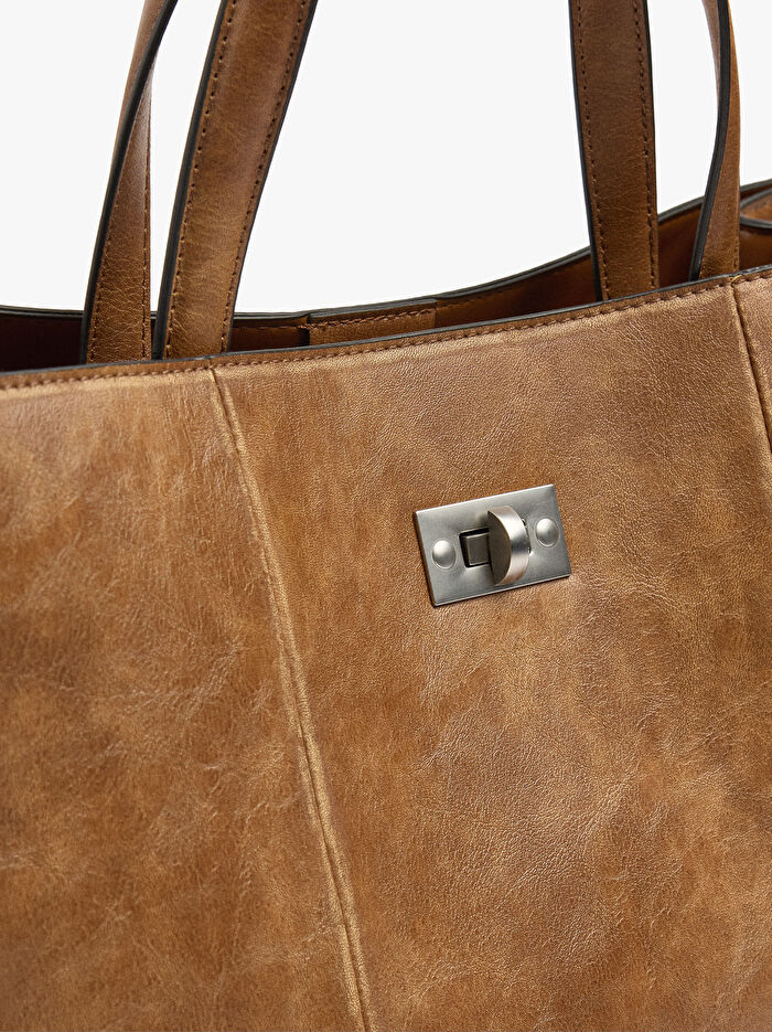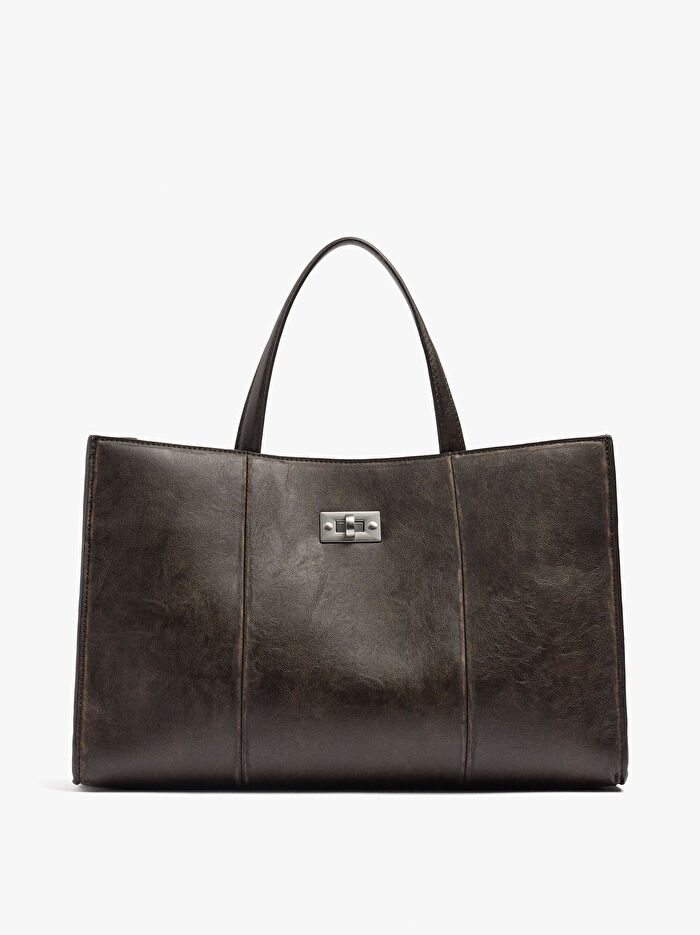 15" laptop için çatlak efektli büyük çanta. Astar ve iç cep. Fermuarlı kapatmalı orta bölme. Mıknatıslı kapatmalı yan bölmeler. Sabit el askıları. Ayarlanabilir ve çıkarılabilir çapraz askılı çanta askısı içerir.