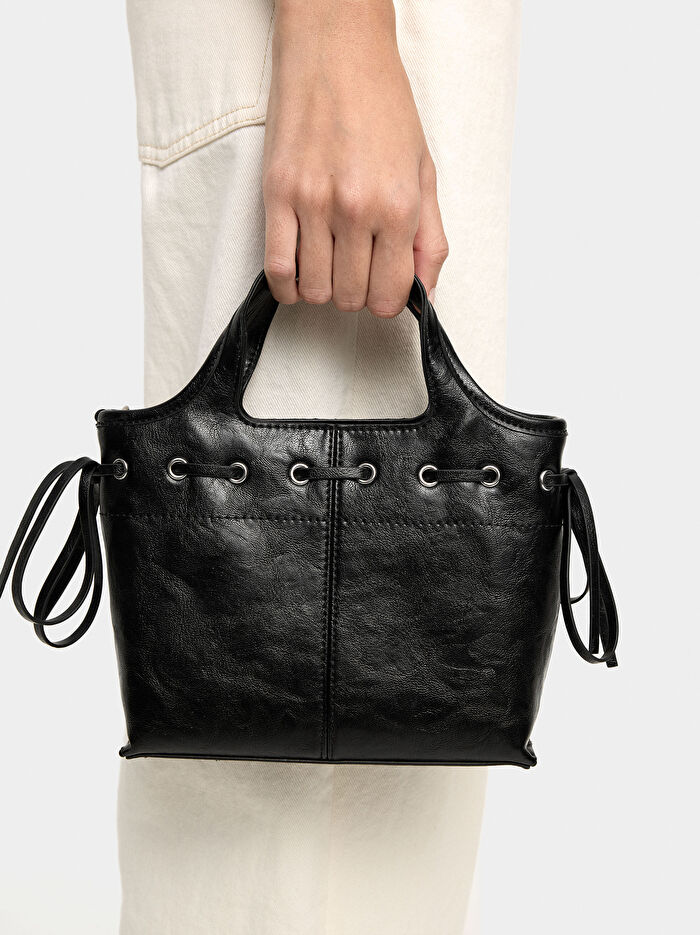 Çatlak Efektli Kordonlu Tote Çanta