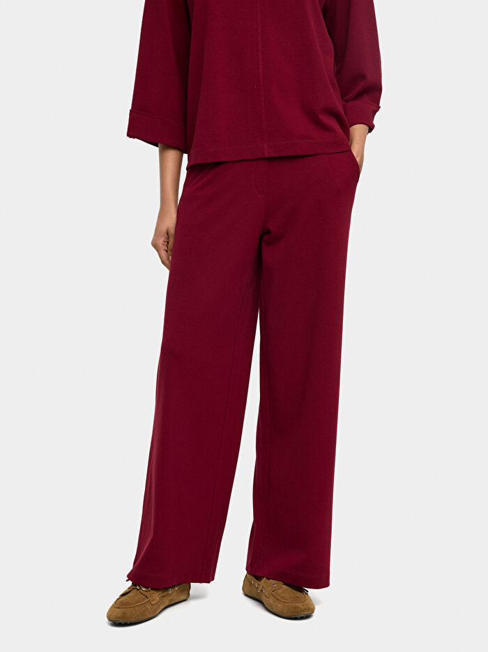 Yan cepli düz pantolon. Pamuk ve liyosel karışımı. Ön kısımda düğme detayı. Elastik bel. Model 1,80 m boyunda ve XS-S beden giyiyor.