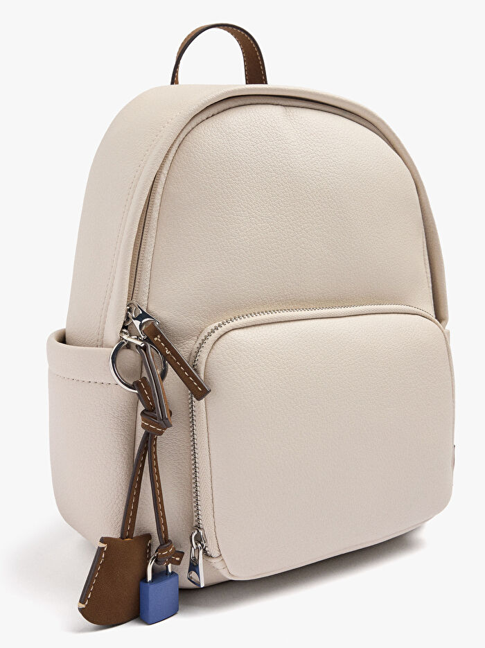 Büyük basic sırt çantası. Astar ve iç cep. Ön, arka ve yanlarda dış cepler. Çıkarılabilir charm. Üst kısımda sabit bileklik askısı. Sabit ve ayarlanabilir arka askılar.