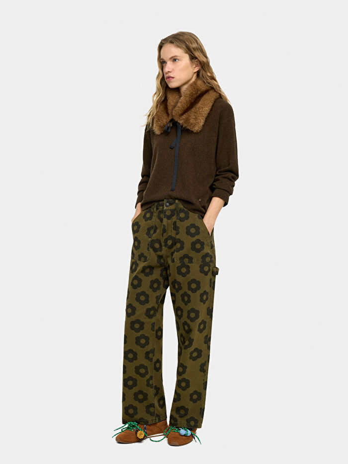 Çiçek Desenli Kot Pantolon