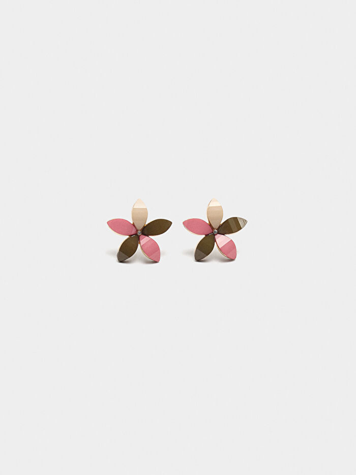 Çiçek şeklinde tek renkli resin küpe. Ortasında parlak cam detay.