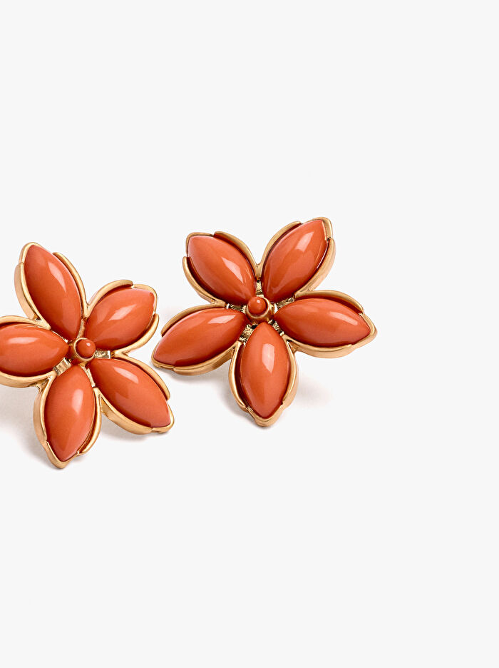Resin çiçek şeklinde kısa küpeler. Metalik kenarlı taç yapraklar.