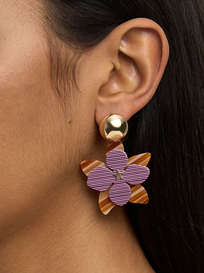 Çiçek ve Çizgili Uzun Küpe
