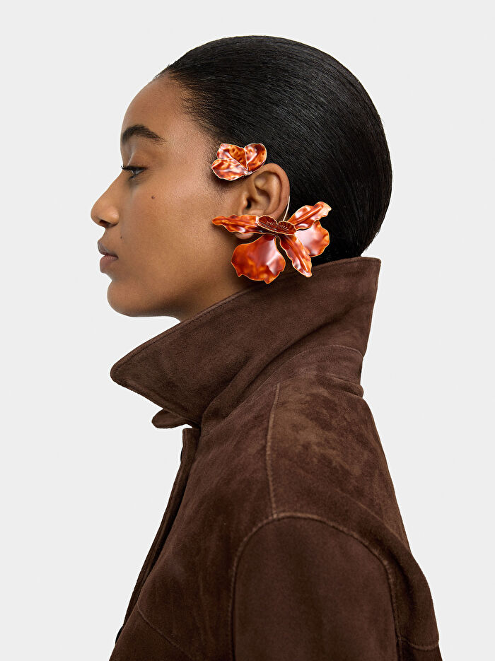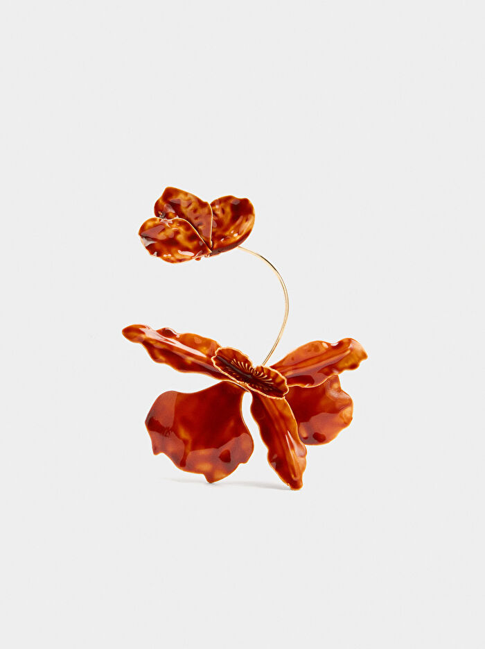 Kabartmalı emaye çiçek desenli maxi kulak kelepçesi küpe.