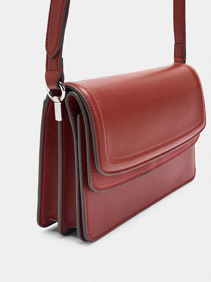 Çift kapaklı ve manyetik kapamalı, pürüzsüz ve yapısal çapraz askılı çanta. İç astar. Fermuarlı iç bölme. Sabit ayarlanabilir askı.