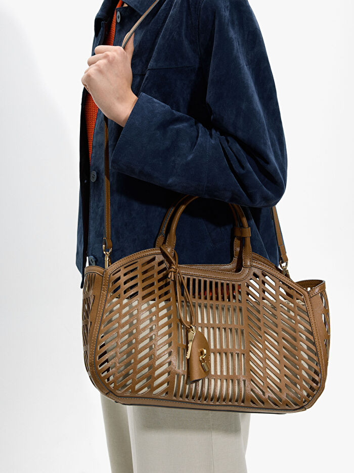 Çıkarılabilir Cepli Delikli Tote Çanta L