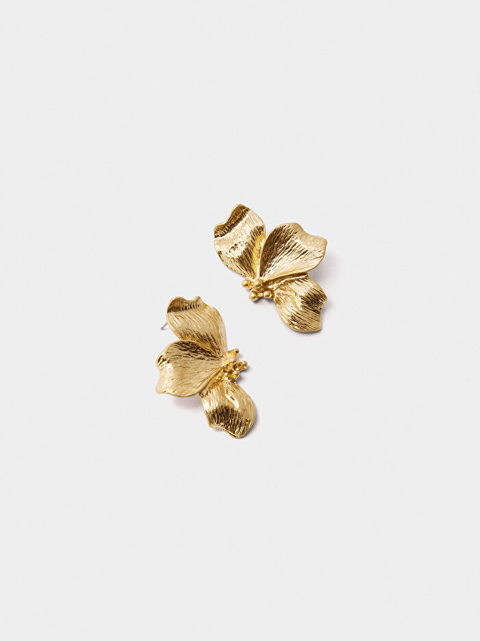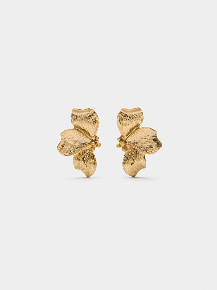 Çizgili Yarım Çiçek Küpe