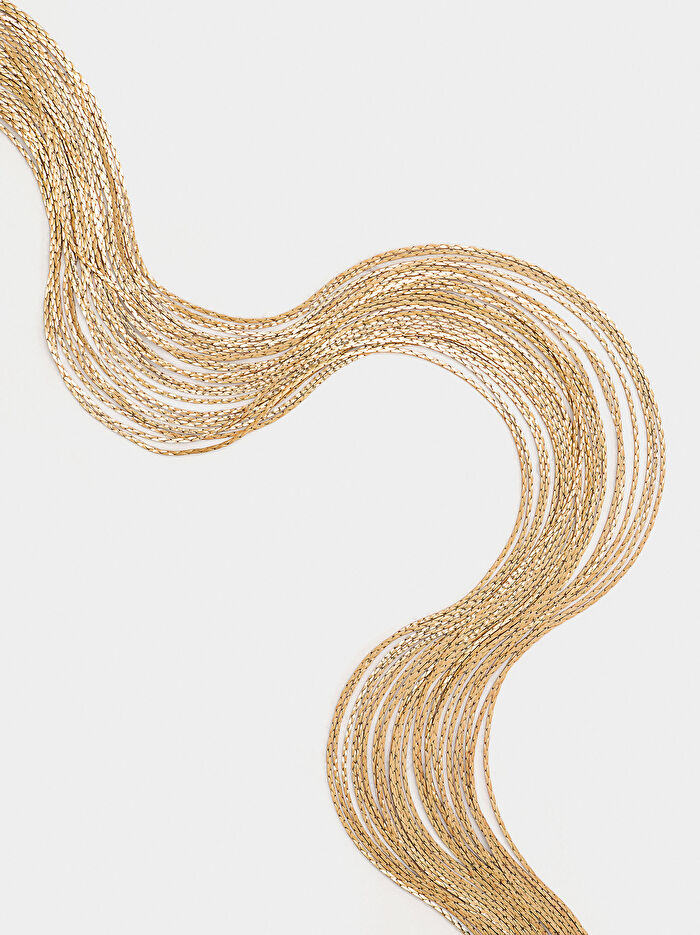 Kısa, düz, esnek, çoklu yakalı. Uçları çubuklarla ve karabina toka ile kapanır.