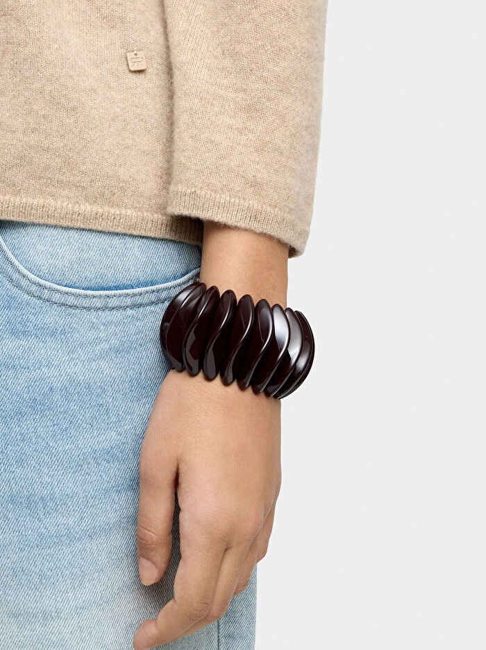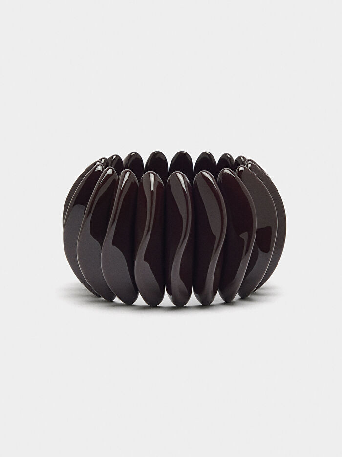 Reçine dalgalı çubuklu yuvarlak elastik bileklik.