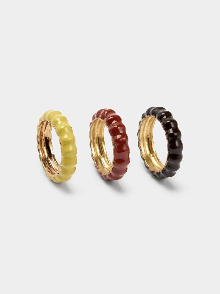 Dalgalı ve Mine Kaplı Yüzük Seti