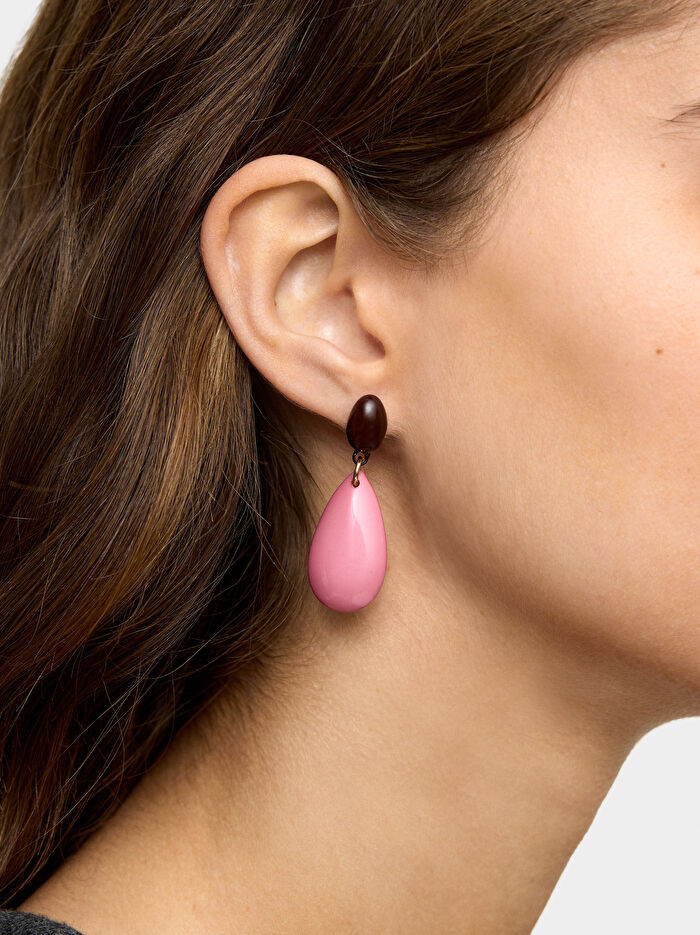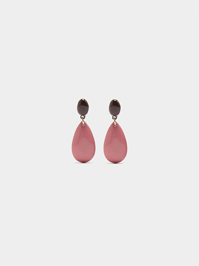 Oval tabanlı ve damla şeklinde pandantifli orta boy küpe.