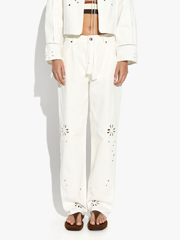 Delikli Nakışlı Pantolon %100 Pamuk