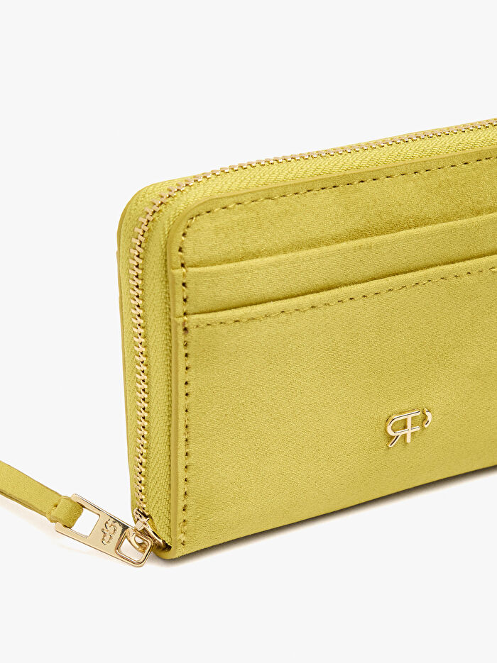 Deri efektli küçük cüzdan. Kart yuvaları. Bozukluk bölmesi. Fermuarlı kapatma.