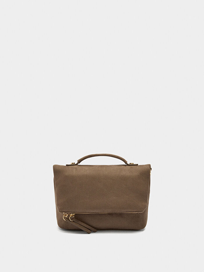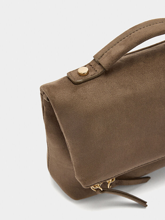 Deri görünümlü, manyetik kapaklı ve fermuarlı parti çantası. Çatlak efektli. İç astarlı. Sabit bilek kayışı. Ayarlanabilir ve çıkarılabilir zincirli çapraz askılı çanta kayışı dahildir.