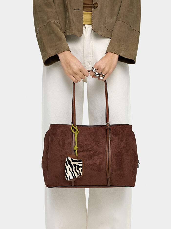 Deri görünümlü 13” laptop çantası. Üç bölme; biri fermuarlı. Astar ve iç cep. Çıkarılabilir deri charm'lı. Sabit omuz askıları.