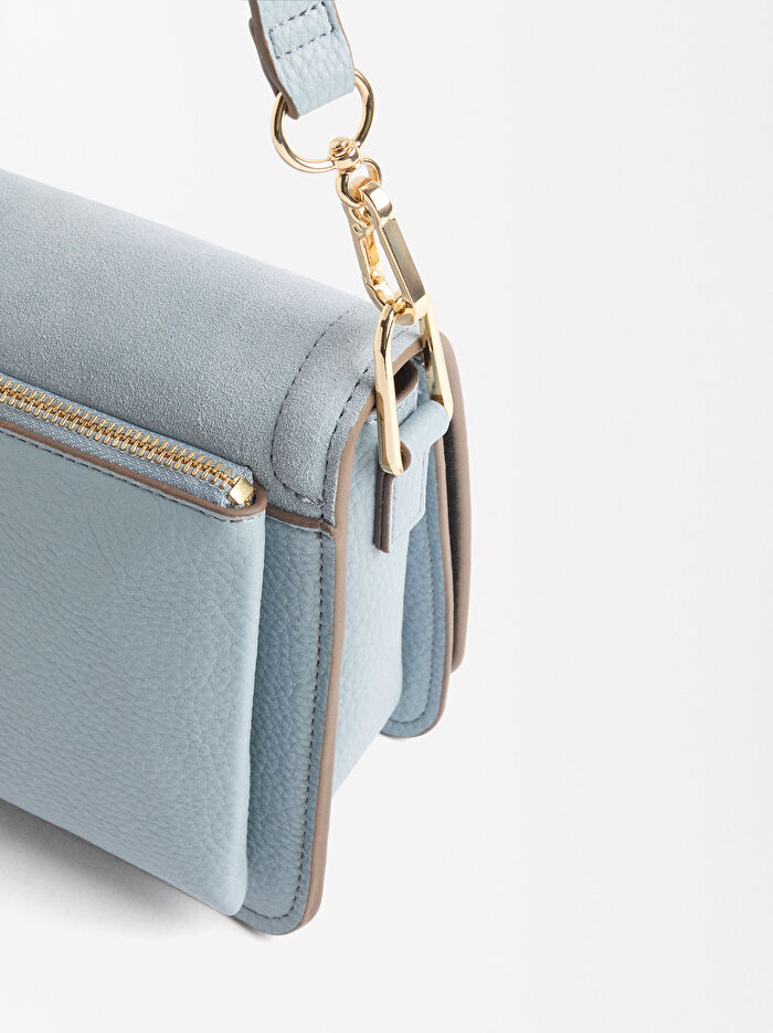 Deri ve mıknatıslı kapaklı omuz çantası. Astarlı ve iç cepli. Fermuar kapatmalı arka dış cep. Çıkarılabilir omuz askısı. Ayarlanabilir ve çıkarılabilir çapraz askılı.