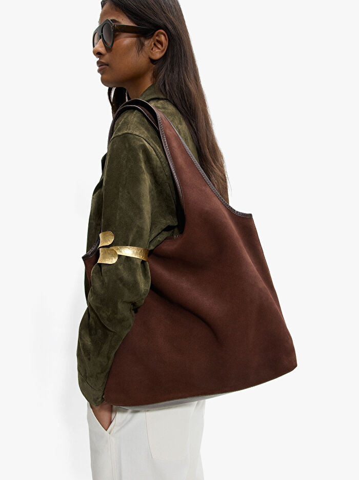 İç cepli büyük deri shopper çanta. Manyetik kapatma. Farklı dokuda kenar detayları. Çantaya stabilite sağlayan deri taban. Sabit askılar.