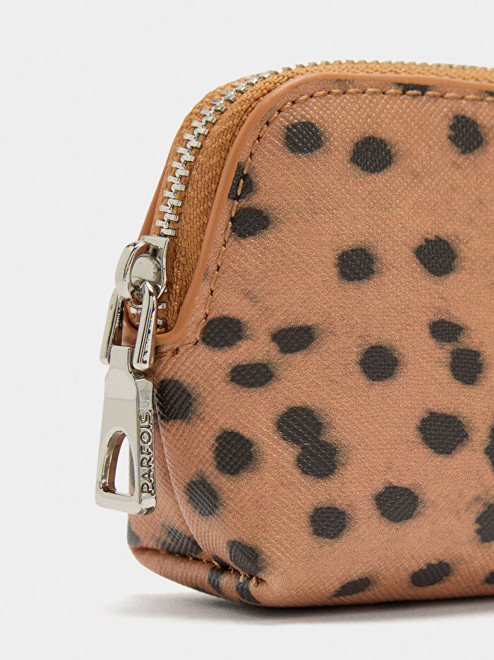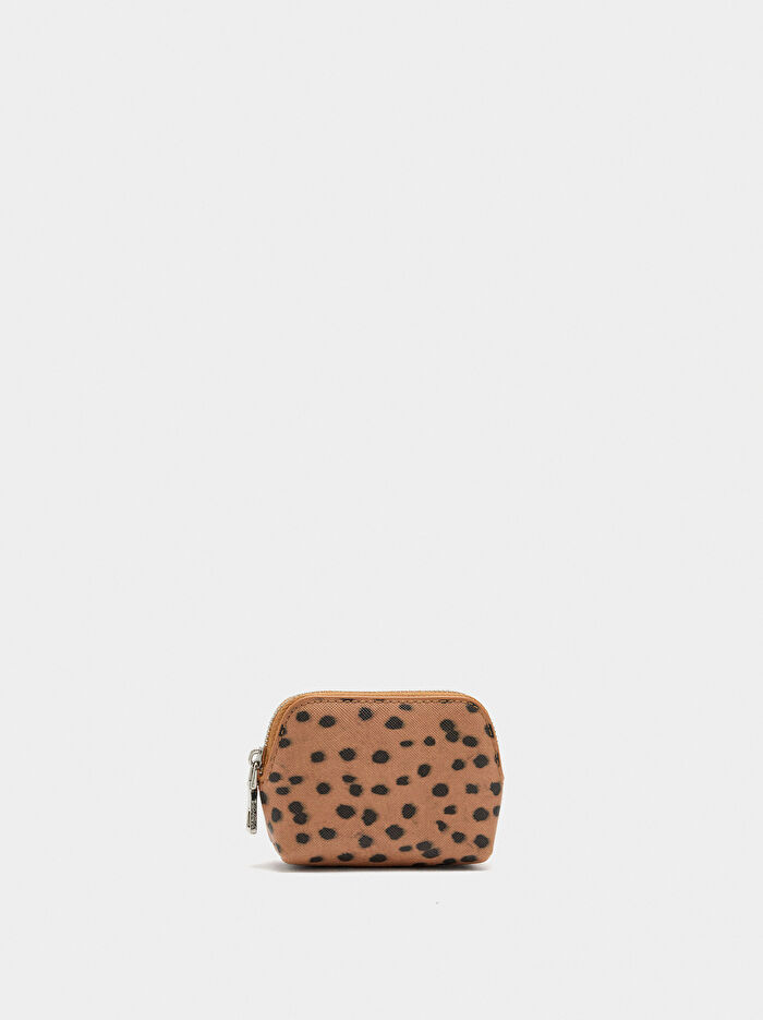 Basic, dokulu ve desenli hayvan desenli bozuk para cüzdanı. İç astar. Fermuarlı kapatma.