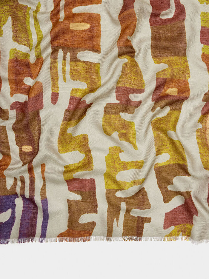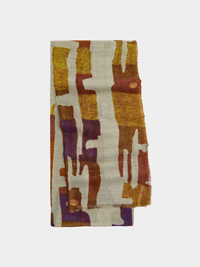 Yün karışımı, hafif ve yumuşak kumaştan üretilmiş, kenarları ince saçaklı bir fular. Zarif ve çok yönlü olan bu fular, her tarza renk ve şıklık katar.
