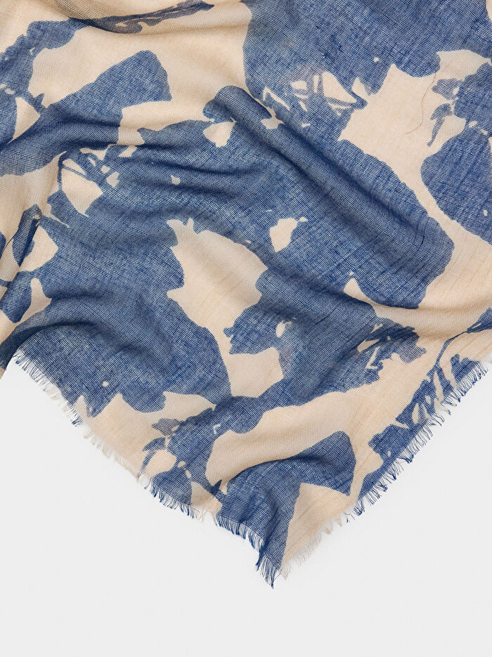 Yün karışımlı, hafif ve yumuşak baskılı şal. Uçlarında ince saçaklar. Çok yönlü, her görünüme renk dokunuşu katar.