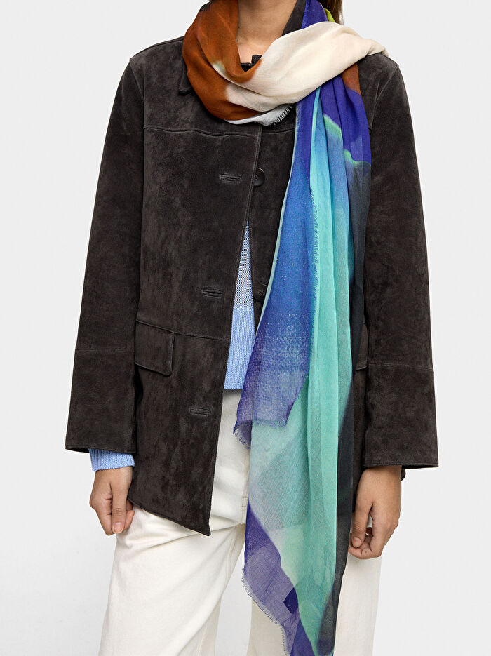 Hafif ve yumuşak dokulu, baskılı pamuklu şal. Kenarlarında ince saçaklar. Zarif ve çok yönlü, her görünüme renk ve sofistike bir dokunuş katar.