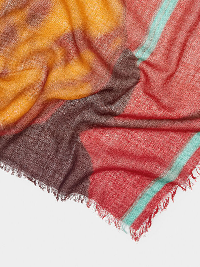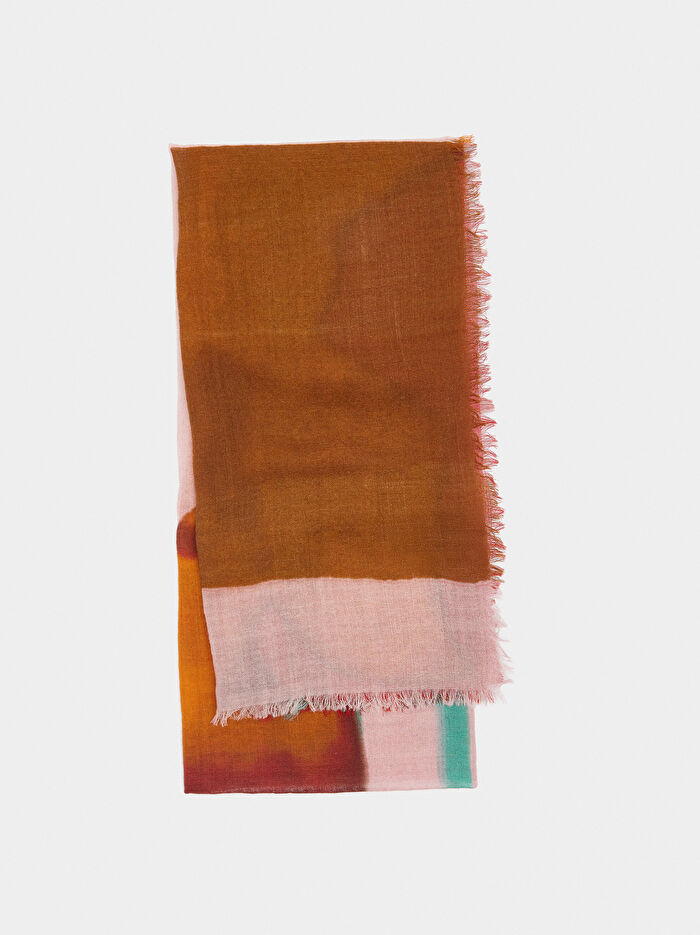 %100 yünlü baskılı fular. Kenarlarında ince saçaklar. Çok yönlüdür, her tarza renk ve şıklık katar.