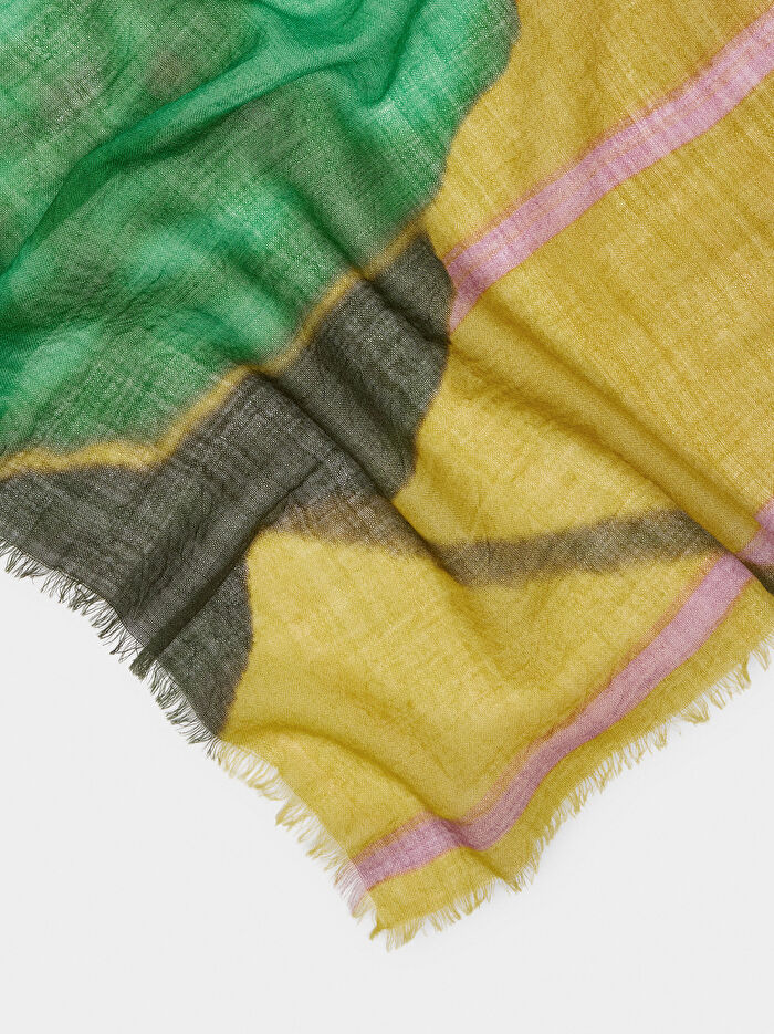 %100 yünlü baskılı fular. Kenarlarında ince saçaklar. Çok yönlüdür, her tarza renk ve şıklık katar.
